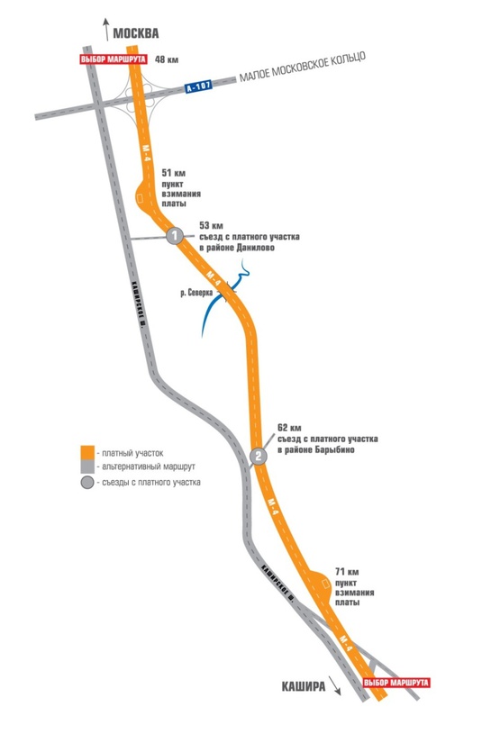В течение месяца после открытия участок будет работать в тестовом режиме и по новой дороге можно будет проехать бесплатно, кассиры на пунктах взимания платы будут выдавать водителям буклеты с информацией о дороге и тарифах. «Автодор» хочет сначала протестировать оборудование и приучить водителей, рассказал Кельбах. На открытии предыдущего платного участка М4 «Дон» в обход Задонска-Хлевного плату за проезд начали брать сразу же, у пунктов оплаты скопилась пробка, многие водители платить отказывались. Теперь будет время привыкнуть — участок будет бесплатным как минимум месяц. Останется и обязательная бесплатная альтернатива — старое Каширское шоссе. «Автодор» договорился с Федеральным дорожным агентством тщательнее следить за ремонтом альтернативной трассы: «Дорогу будем поддерживать в приемлемом состоянии», — пообещал Кельбах. Тариф за проезд по платному участку для легковых автомобилей составит 30 руб. днем и 10 руб. в ночное время (с полуночи до семи утра), для тяжелых грузовиков — 120 руб. и 40 руб. соответственно. Платить можно будет наличными или банковской картой в кассу, смарт-картой, приложив ее к считывающему устройству, или при помощи транспондера (специальное электронное устройство, устанавливаемое на лобовом стекле) — тогда деньги будут считываться автоматически, для автомобилей с транспондерами будут предусмотрены выделенные полосы. Приобрести смарт-карту или транспондер можно будет на пунктах взимания платы. Смарт-карта обойдется в 50 руб., транспондер выдается бесплатно, но взимается абонентская плата — 50 руб. в месяц. Пополнить счет можно в банкоматах Сбербанка и на специальных терминалах, их установят в пунктах взимания платы, на заправках и в придорожных магазинах. Участок был построен еще в 1999 г., с 2008 г. шла реконструкция, благодаря которой добавилось две новые полосы, было построено две развязки и отремонтирован мост через реку Северка. Реконструкция стоила около 6 млрд руб. Удельная цена строительства километра новой дороги на отрезке магистрали 21-117 км с учетом изъятия земель и переноса инженерных коммуникаций — около 650 млн руб., рассказал Кельбах. Сейчас на платном участке шесть полос движения, дорога будет полностью освещенной, почти на каждом километре установлены пункты экстренной связи, покрытие — цементно-бетонное. Участок оснащен и интеллектуальной системой управления движением: информация с десяти камер собирается в центре управления. Если автомобиль остановится, на него сразу поворачивается ближайшая камера, и оператор принимает меры: вызывает аварийные службы, закрывает одну из полос движения или меняет ограничение скорости. Сейчас разрешенная на автомагистрали скорость — 110 км/ч, но скоро ездить можно будет быстрее. Со дня на день будет готово постановление правительства о внесении изменений в ПДД, рассказал Кельбах: максимальную скорость на автомагистралях первой категории предлагается увеличить до 130 км/ч, сделано это может быть уже до конца года. ![]()